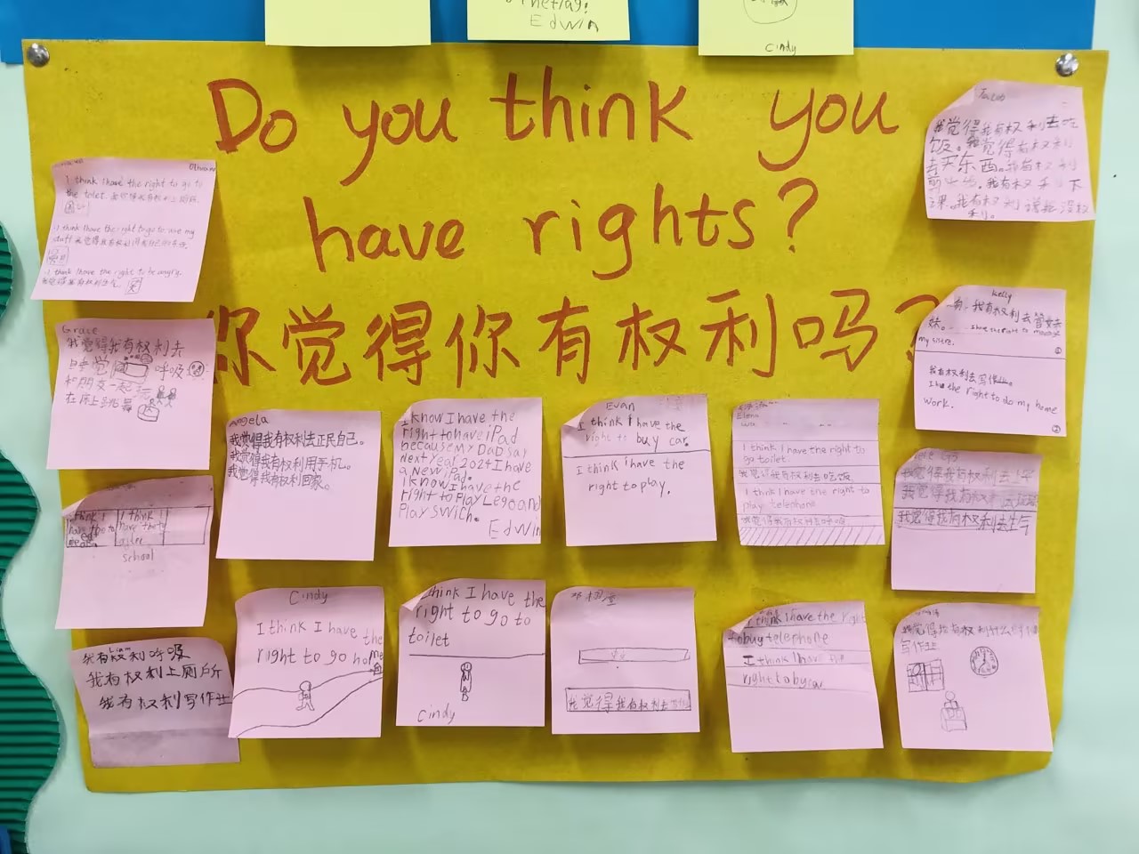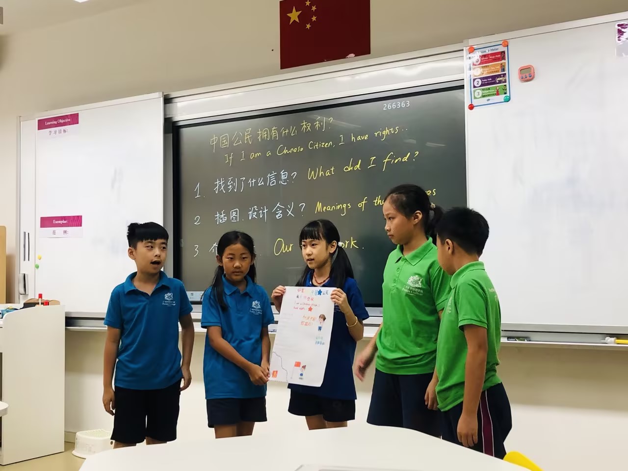 As Chinese citizens, what kind of rights do we have? Are everyone's rights the same? Are the rights and responsibilities of children different from those of adults? Students used the school library, MyOn online library, etc. to look for relevant books on this topic. They also used iPads to search for relevant information on the Internet. Both the students’ social and research skills were developed through this stage by working together to research their topics.