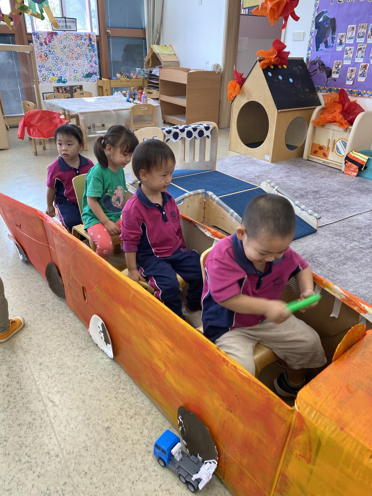 在圆圈讨论活动中,孩子们探索了各种不同的交通工具以及它们的用途,还深入研究了交通标志的图案,并通过互动游戏和动听的歌曲了解了交通规则和交通安全。孩子们通过积极参与这些活动,对交通的相关概念有了更深入的理解,并培养了对自身安全和他人福祉的责任感。