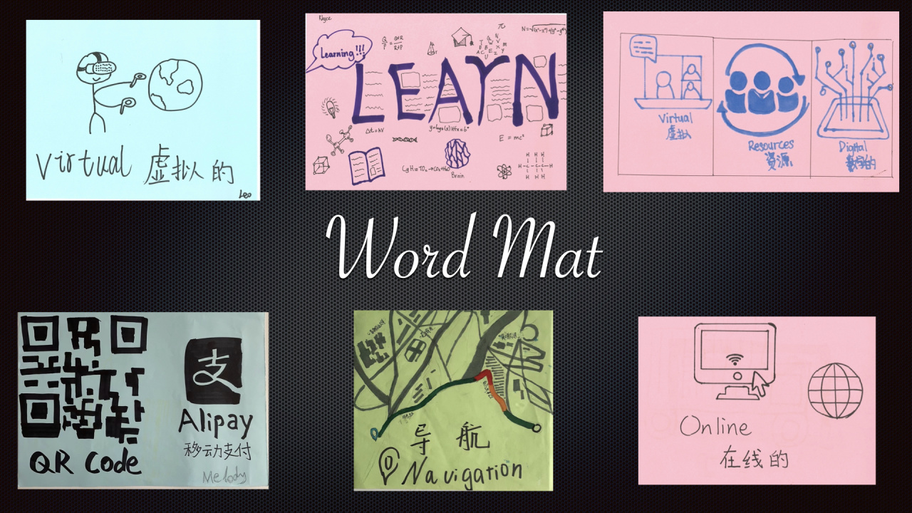 为了创造沉浸式的语言学习环境,我们采用了一种动态的方法进行学科术语的学习。Quizlet是一款高效有用的语言学习工具,我们可以跟踪学生的学习进展和对词汇的理解程度。在每个单元的总结评估的任务中,同学们将一起完成词汇墙的创作。在设计课堂,我们采用图像化的方式呈现同学们对于学科概念的理解。这种沉浸式的语言学习方式,结合视觉表达,可以强化学生对设计学科中的概念的理解和双语词汇的记忆。
