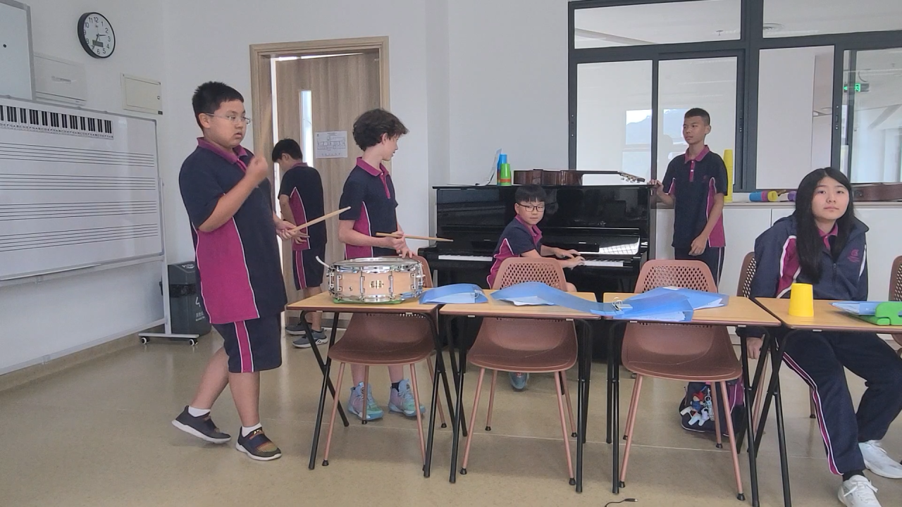 八年级正在探索“什么是好歌曲?”学生通过聆听、分析和表演每首歌曲的编曲部分,探索副歌/旋律、结构、律动和歌词。学生通过案例研究和一系列流行歌曲实例,了解歌曲中的不同组成部分/章节、旋律律动(连接律动和分离律动)和歌词。