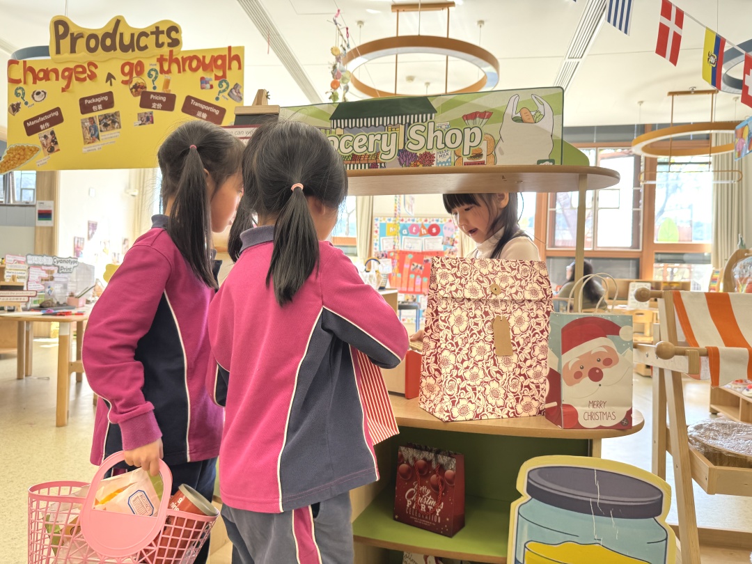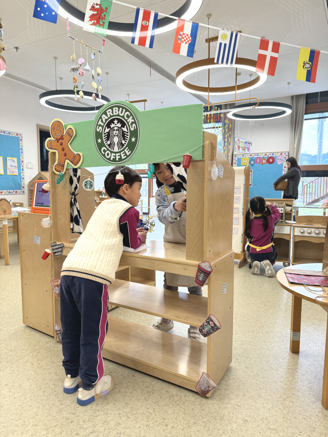 环境布置:瑞吉欧教育体系视教室环境为孩子们的第三位老师,在本次主题探究之始,基于小朋友们的兴趣,孩子们和老师一起,在教室里增设了咖啡店,便利店,阳光打印区以及手工编织区等。