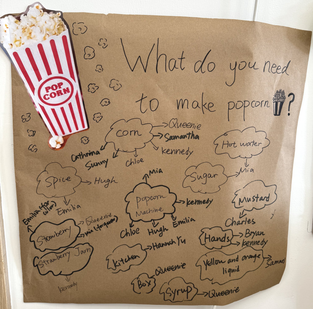 小朋友们发现从生产到售卖爆米花是一件很复杂的事情,他们会遇到各种问题并想办法解决: