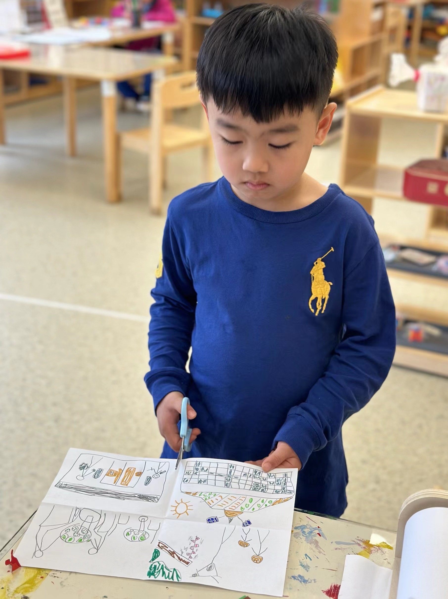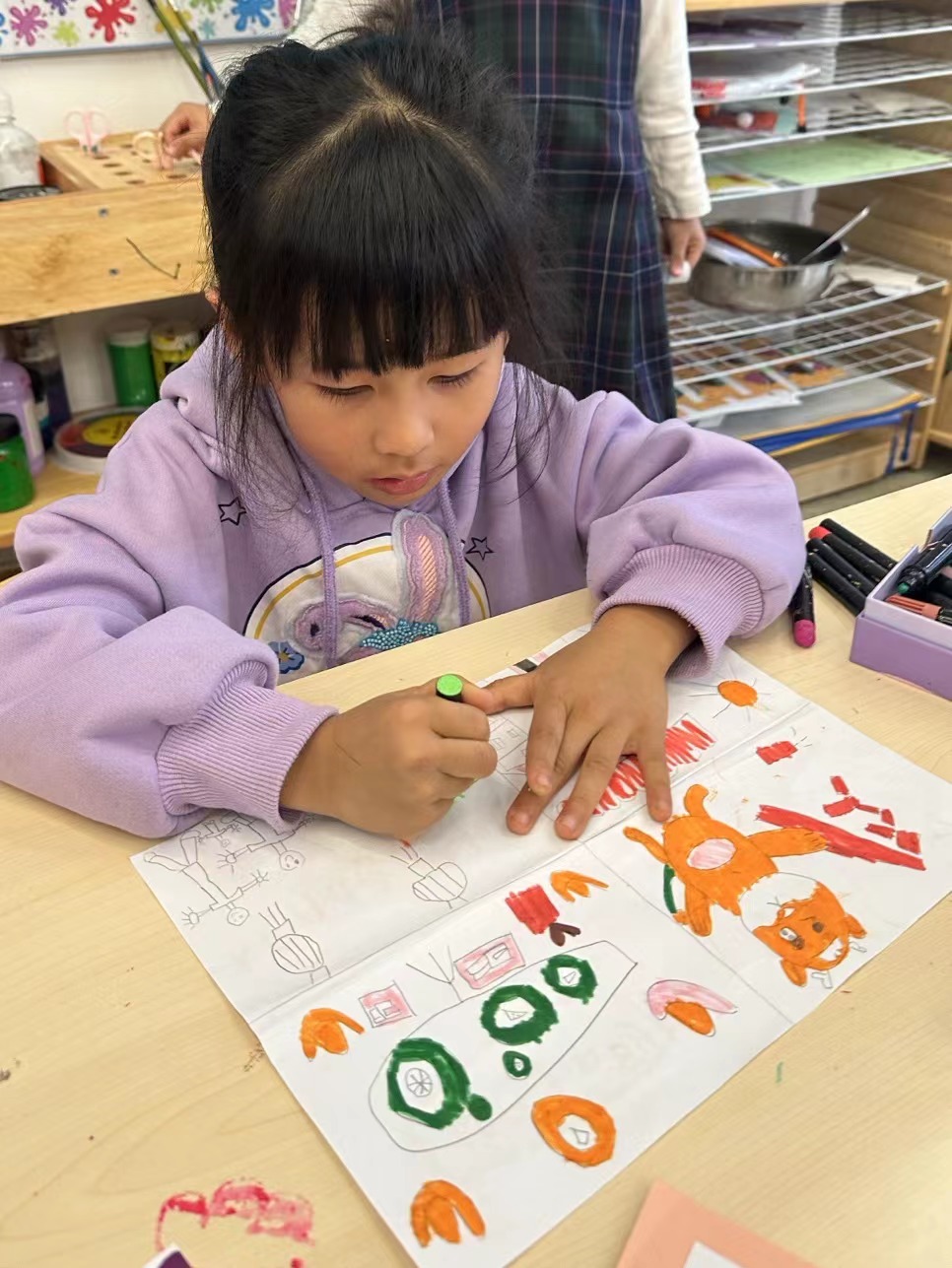 孩子们在感受诗词的意境后,迫不及待地把自己的所见所闻用绘画的方式记录下来,配上王安石伯伯写的诗句做成了一本小书。他们边翻边诵读诗句,自豪地展示着自己得意的作品。
