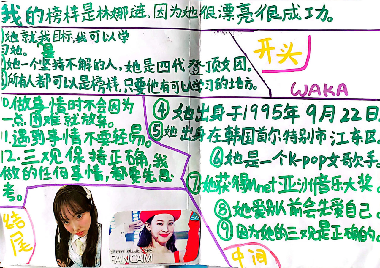 开学两周以来,我们继续开展有意义的探索学习之旅。四年级的学生们完成了超学科主题“我们是谁”探究单元的学习,本单元主要关注生活中的榜样以及榜样对同学们的影响。大部分学生选择了自己的父母或体育明星、娱乐明星作为自己的榜样。通过本单元的探究学习,学生们深刻体会到:为人正直、有耐心和有恒心对实现他们的个人目标是很重要的。学生们受到了他们榜样的启发,并计划将他们榜样的个人特质融入到自己的日常生活中,帮助自己克服以后有可能会遇到的困难。
