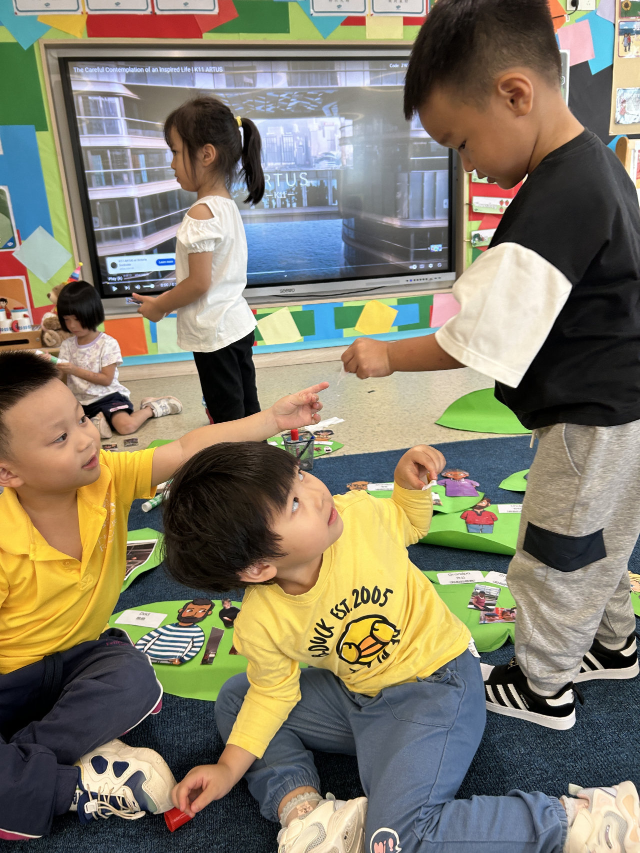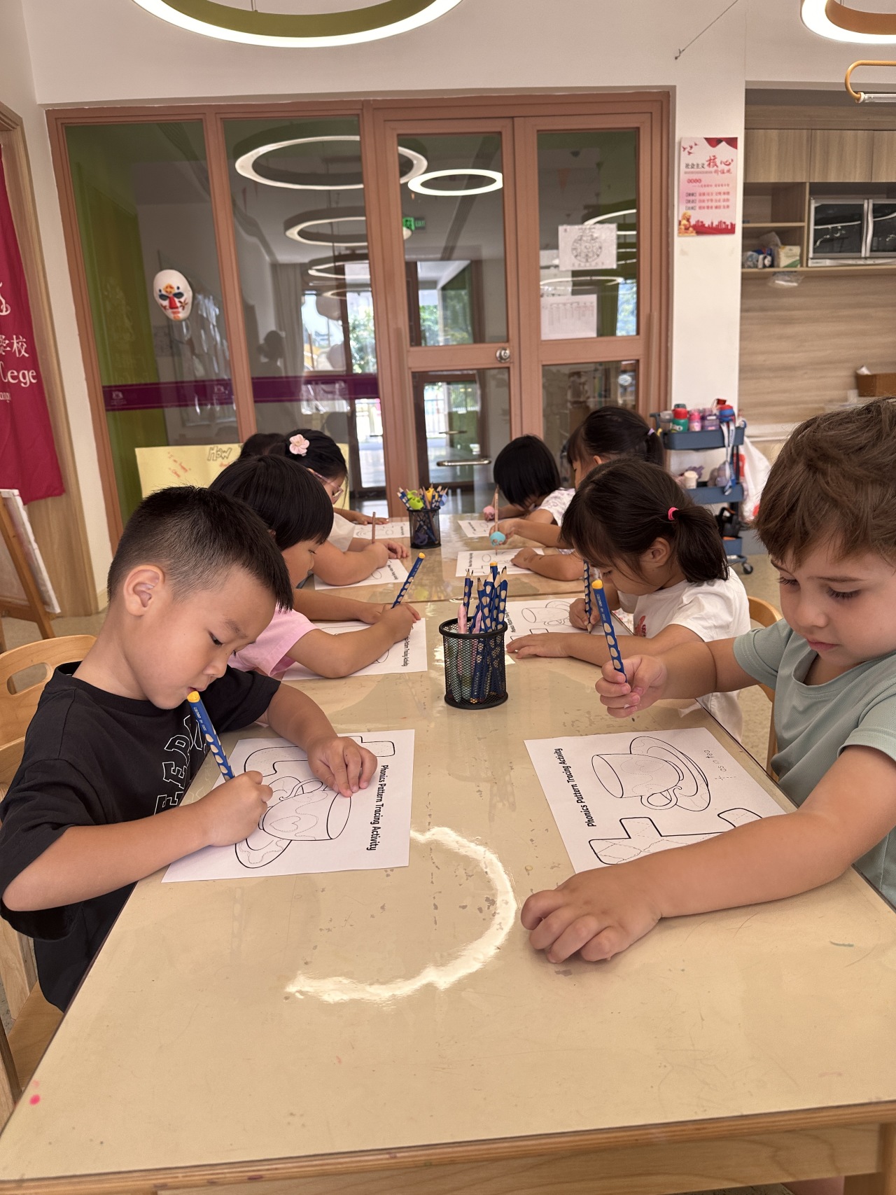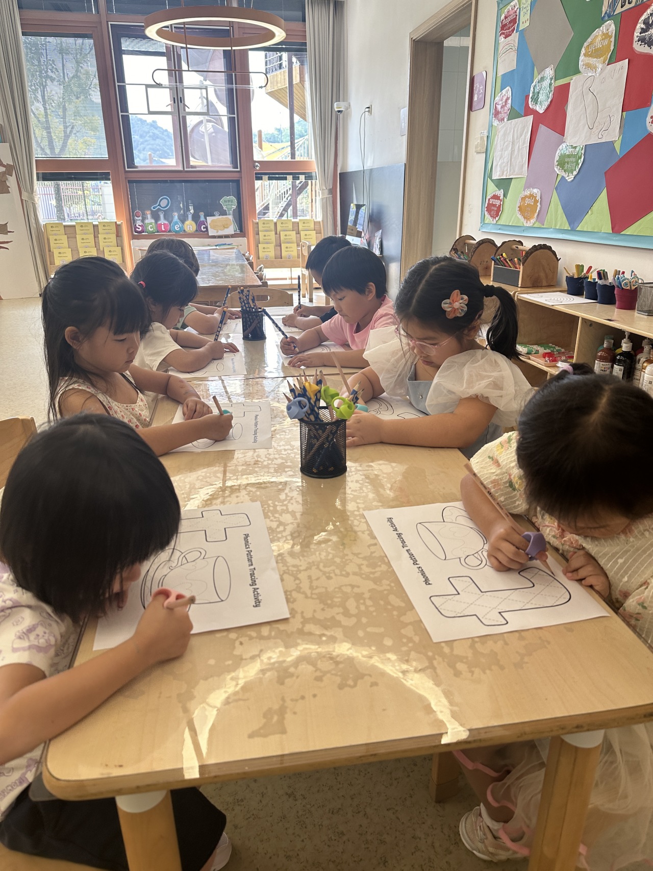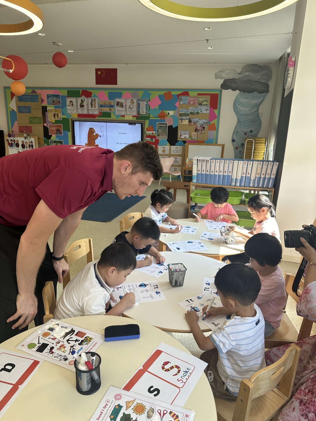 孩子们还认识了以字母“T”开头的单词。在老师的引导下,他们还尝试了“Tree”(树)、“Tap”(水龙头)、“Teddy”(泰迪熊)等单词的发音和拼写,将抽象的字母与实际的物品联系起来,加深了对字母的认知。