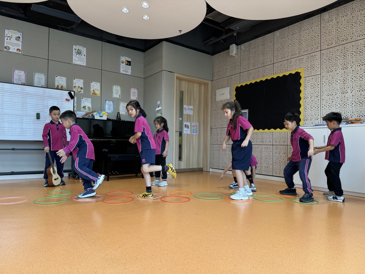 奥尔夫教学法,这一源自德国的音乐教育理念,强调通过身体律动、语言节奏和乐器演奏等多种方式,激发孩子们对音乐的兴趣和感知能力。在音乐课上,小朋友们不再只是静静地坐着听,而是成为了音乐创造的一部分。他们随着音乐的节奏摇摆身体,通过单脚跳、双脚跳等简单的动作感受音乐的律动,整个教室充满了欢声笑语,学习氛围异常活跃。
