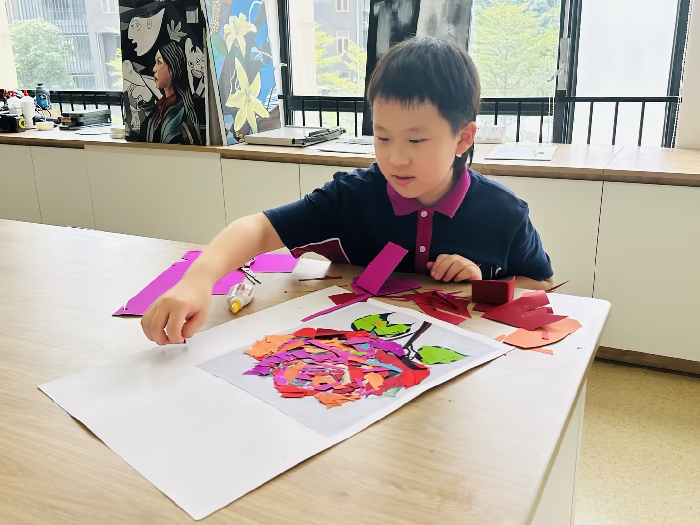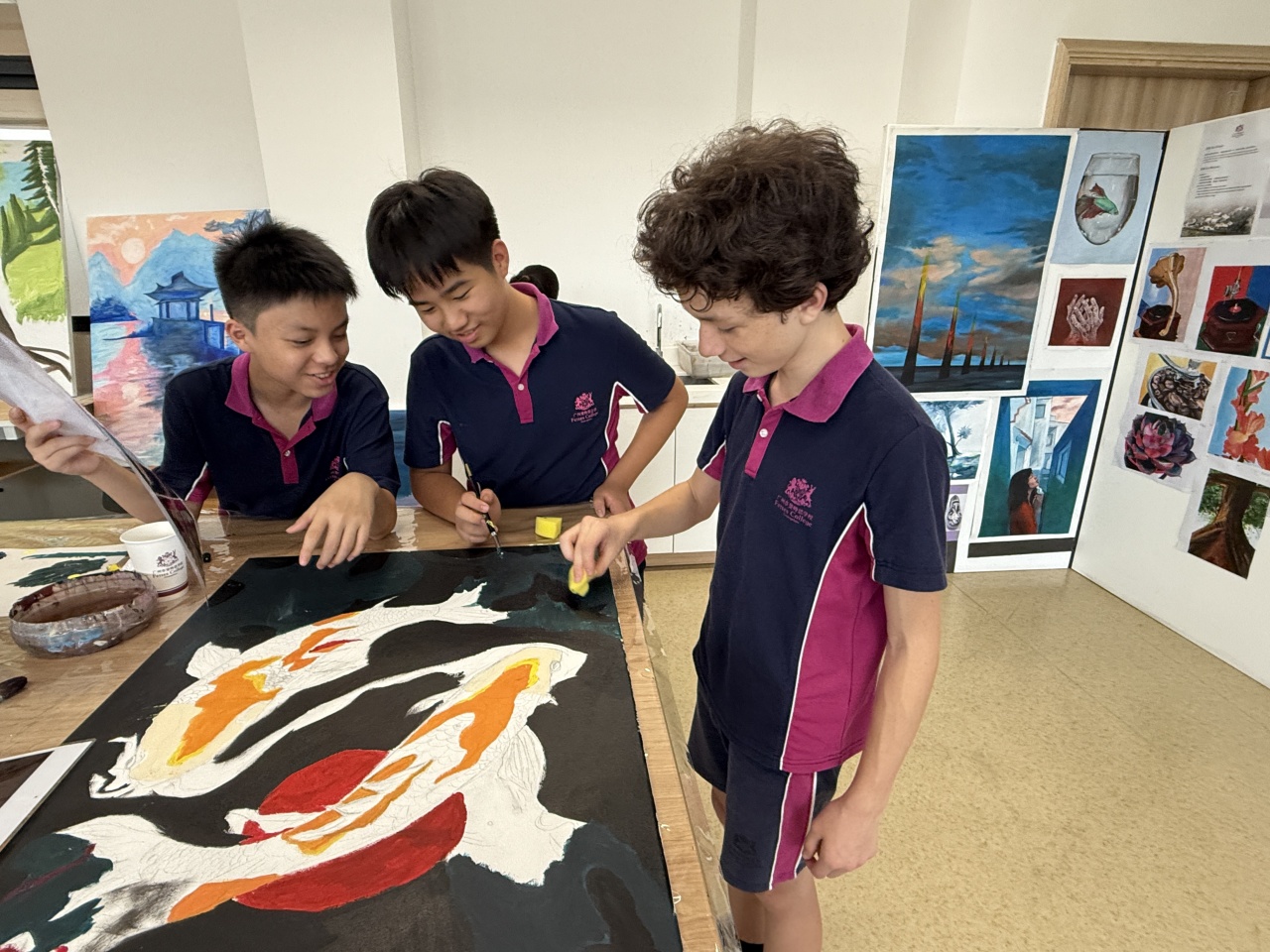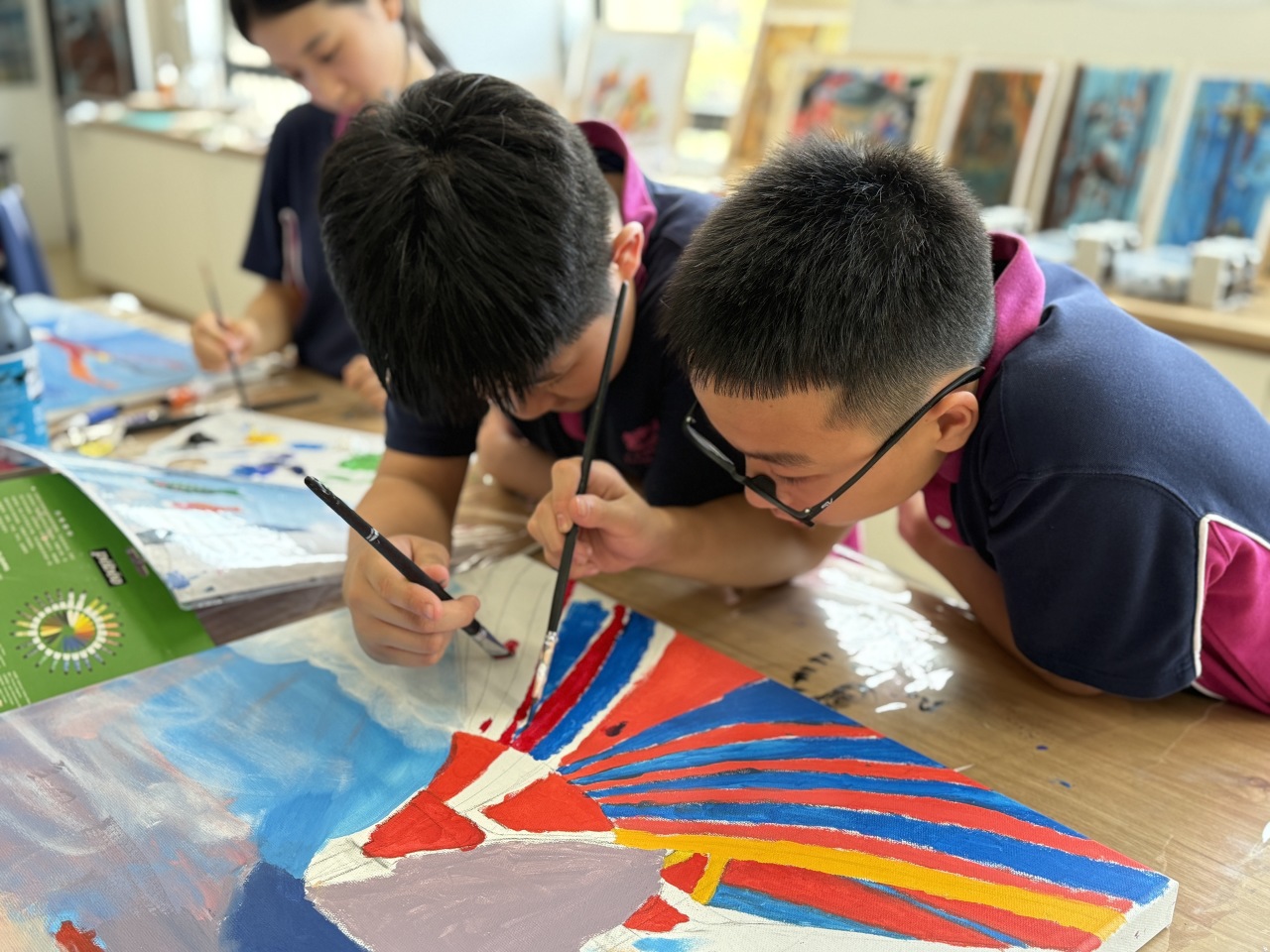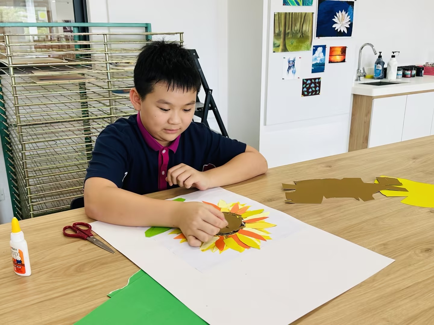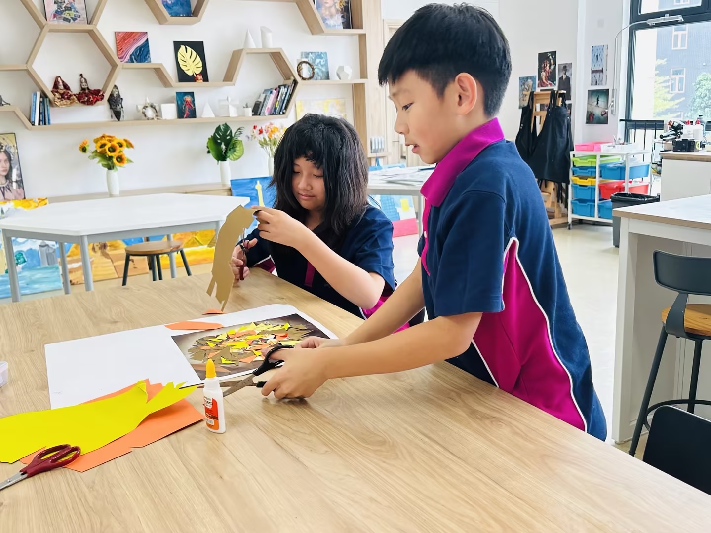 在广州斐特思的国际文化节上,六年级的学生们参与了一个充满活力的艺术项目,表达了他们对全球多样性的理解,创作出代表各国的动物和花卉。学生们积极合作,探索不同文化中独特的动植物,从它们独特的颜色、形状和象征意义中汲取灵感。每个小组都热情洋溢地设计了自己的作品,融入了反映他们所研究国家的传统艺术风格和材料。这项创意活动不仅提升了他们的艺术技能,还促进了对全球文化遗产的更深入理解和欣赏,最终在节日期间展现出了一幅幅美丽的作品,展示了他们的辛勤努力和创造力。