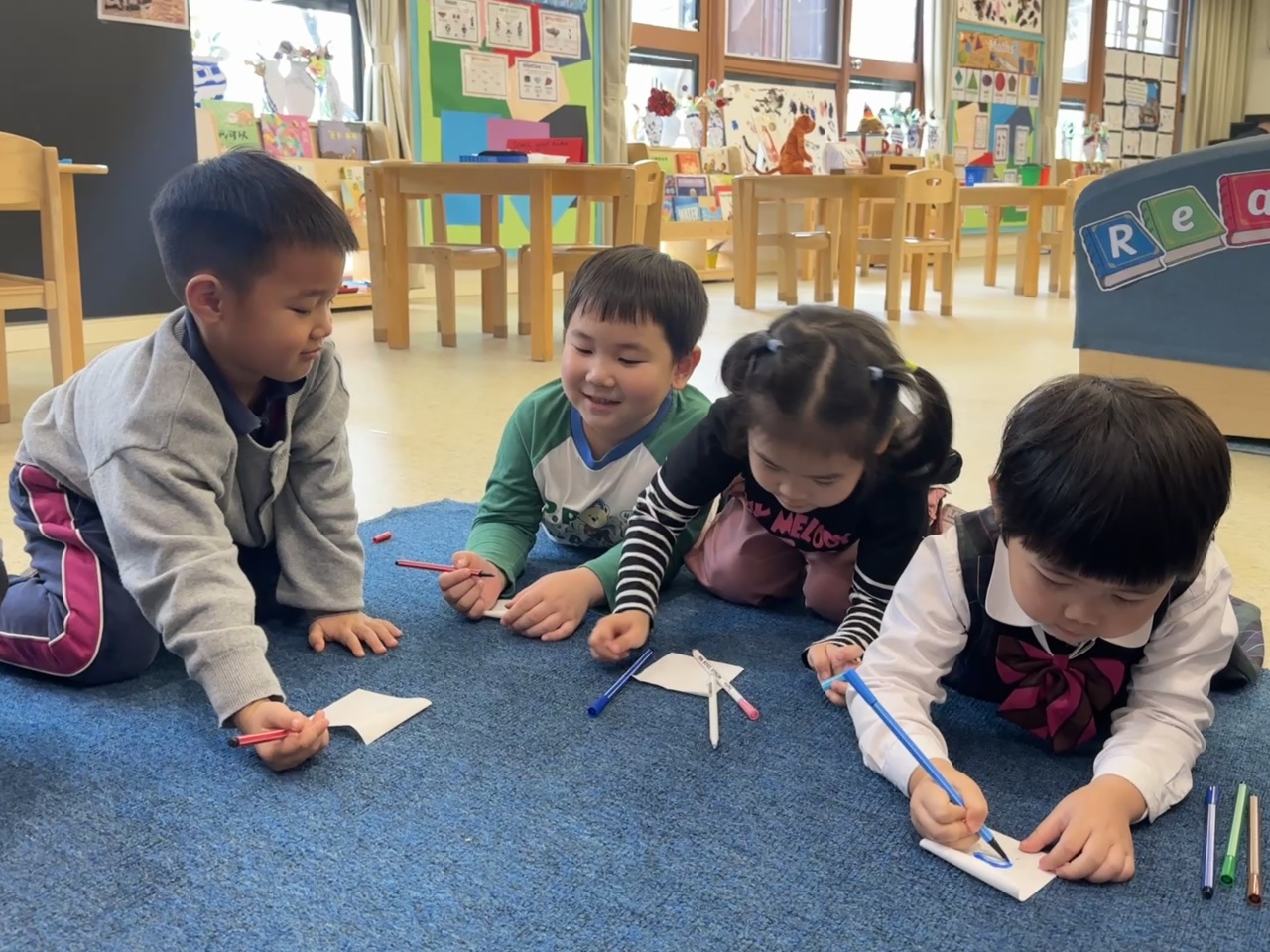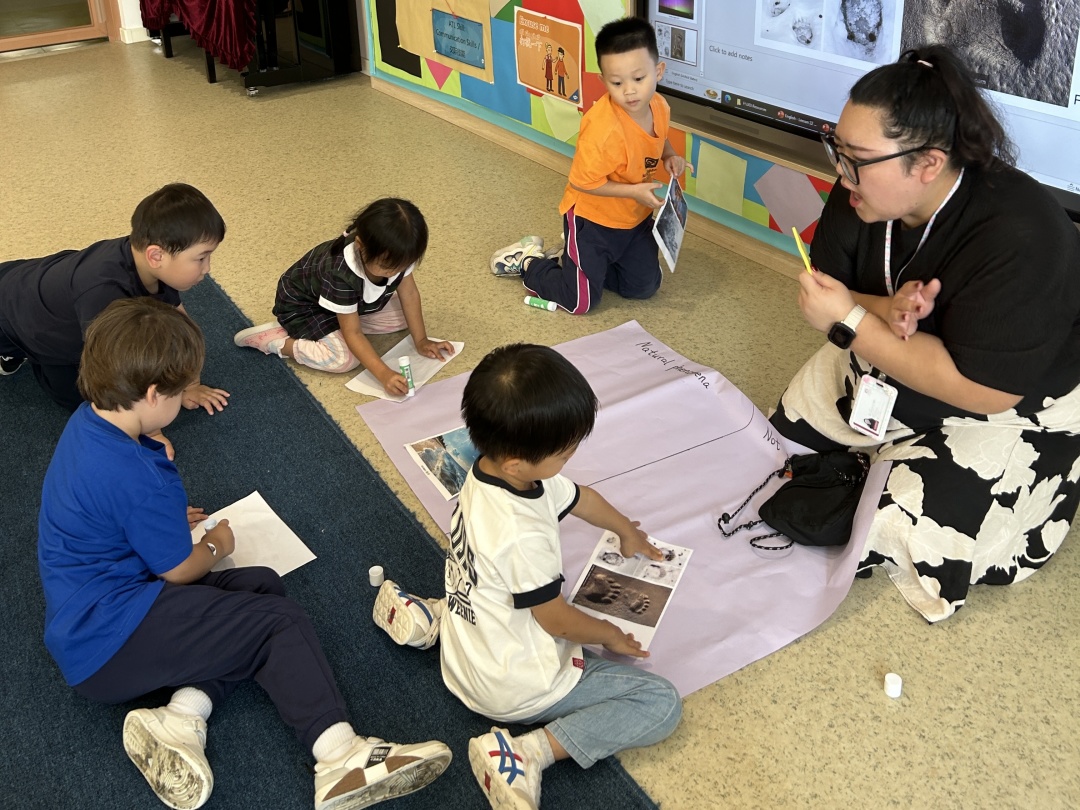 With the cold wind blowing in, the EY3 children started a new exploration into the theme of natural phenomena. We followed “The Curious Polar Bear” to the snow-covered Arctic, started our journey into nature with Mum polar bear. First, we saw the sunlight, the ocean, icebergs, and the Northern Lights. In the end, the little polar bear found that wherever they went, there were footprints. The mum polar bear told him that those were the marks they had made! After the story was over, the children played a game sorting things from the story into “natural phenomena” and “not natural phenomena”. The children then shared what they knew about natural phenomena through drawings.