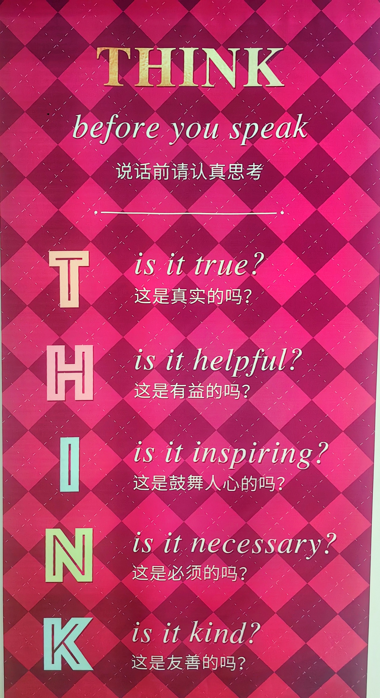 学生关注到学校在楼道、电梯旁特别设置了“说话前请认真思考”的海报,将“三思而后行”的理念深植心中,提醒学生在交流中冷静思考,善用语言,从而提升沟通技巧。通过这样的引导,学生学会在人际交往中细腻体察、巧妙应对,构筑积极健康的人际关系。