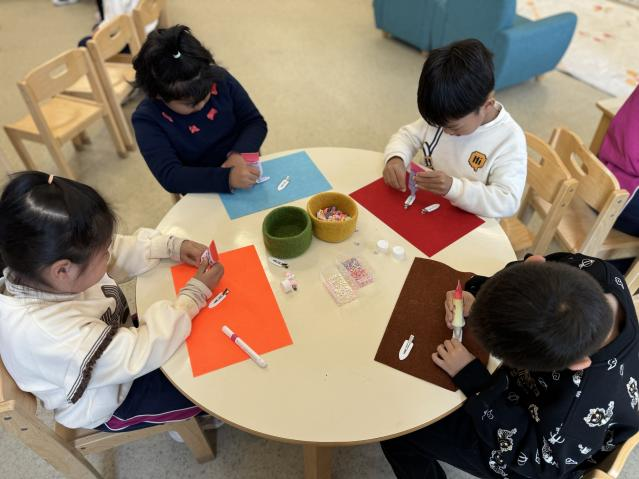 不仅如此,小鲸鱼们还探索了“产品”从制造到售卖的全过程。他们制作了各种精美的手工艺品,如钥匙链和发夹,并在暖冬日将这些作品进行展示和售卖。这个活动不仅加深了他们对“产品”生产、包装和销售的理解,也培养了他们的创造力和商业意识。