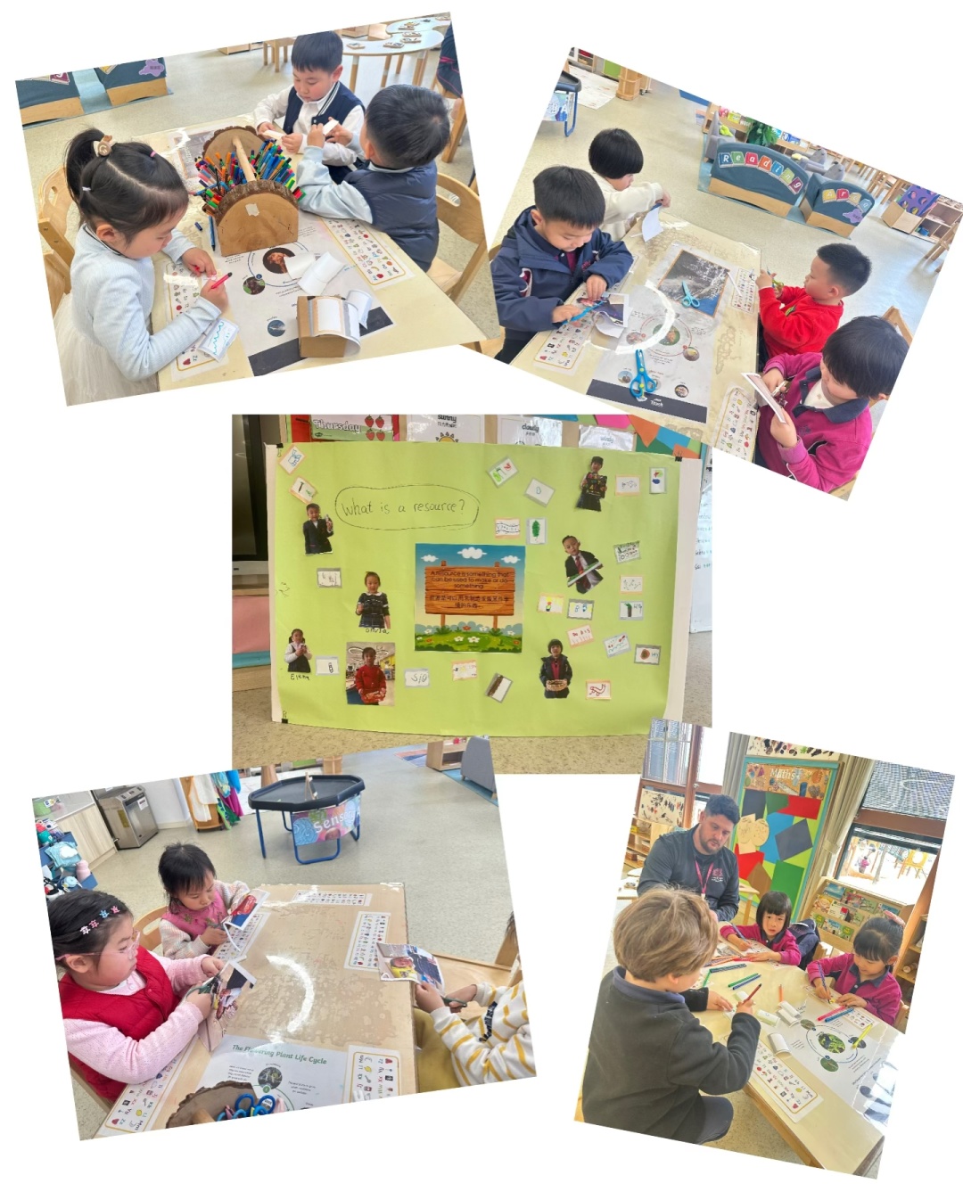 在中班的教室里,孩子们开始了一次全新的探索之旅,我们的主题是:“我们可以做出选择,帮助延长地球资源的使用期限。”