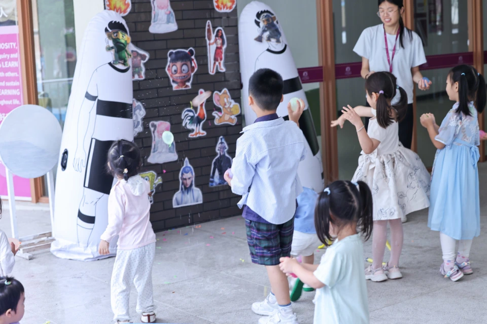 活动当天,孩子们参与了丰富多彩的水上游戏。他们尽情嬉水、吹泡泡,还体验了喷枪绘画,创作出色彩缤纷的作品。水上钓鱼游戏和水气球投掷比赛更是点燃了全场的热情,孩子们互相加油,玩得不亦乐乎。
