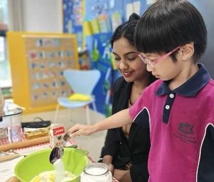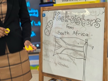 为让孩子们更深刻地感受这些文化,Rosa老师带着孩子们走进“魔法厨房”,亲手体验制作南非传统甜点——Koeksisters。这次美食之旅,不仅让南非文化以最甜蜜的方式烙印在孩子们心中,更在他们幼小的心灵播下了理解与尊重多元文化的种子。