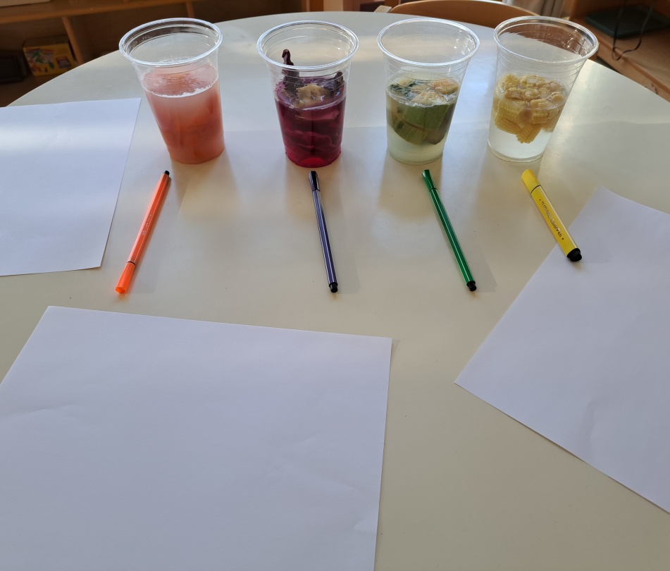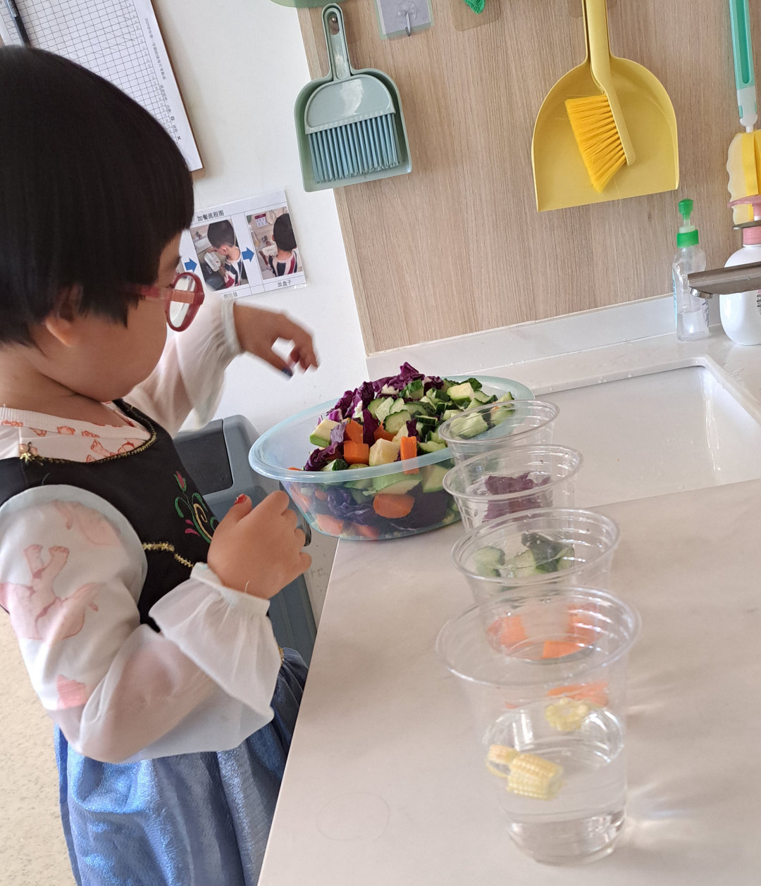 如果把蔬菜泡在水里会怎样呢?带着好奇,我们开始了实验。第二天,惊喜出现了:卷心菜水变成了梦幻的紫色,胡萝卜水变成了明亮的橙色!