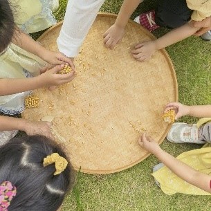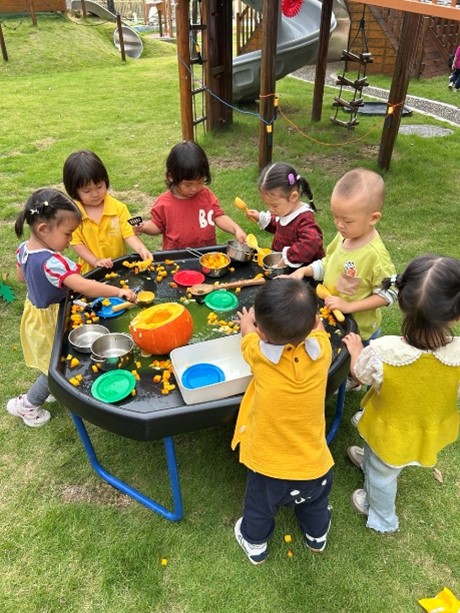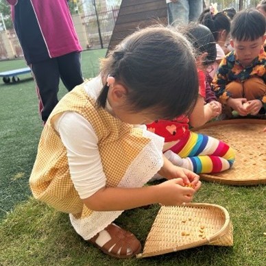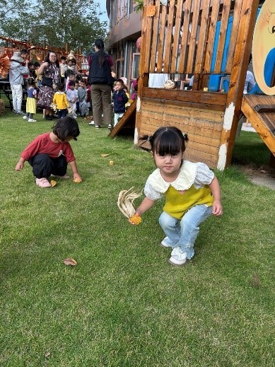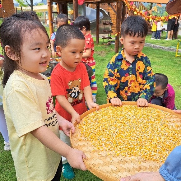幼儿园的孩子们通过歌声、游戏和烹饪活动,共同庆祝了金秋丰收节!活动伊始,我们以一场剥玉米的活动拉开序幕——EY1和EY2的小朋友们化身为小小采摘员,在游戏区努力寻找藏好的玉米。