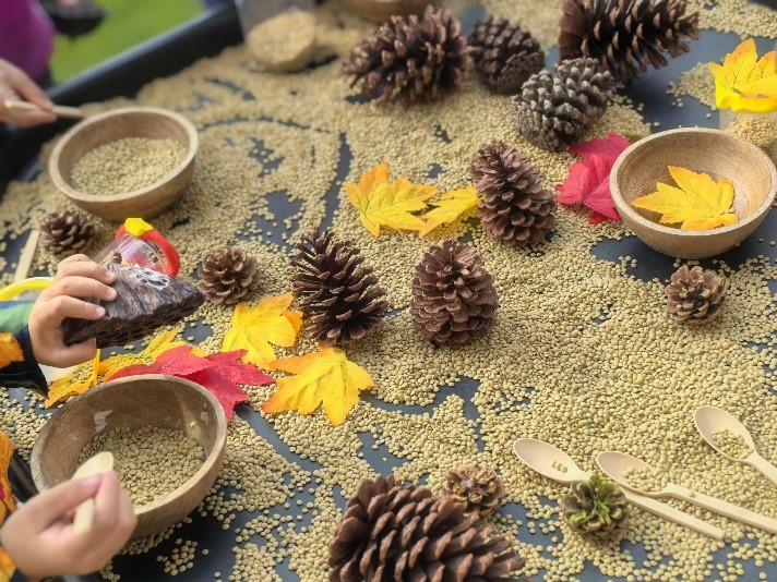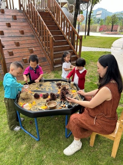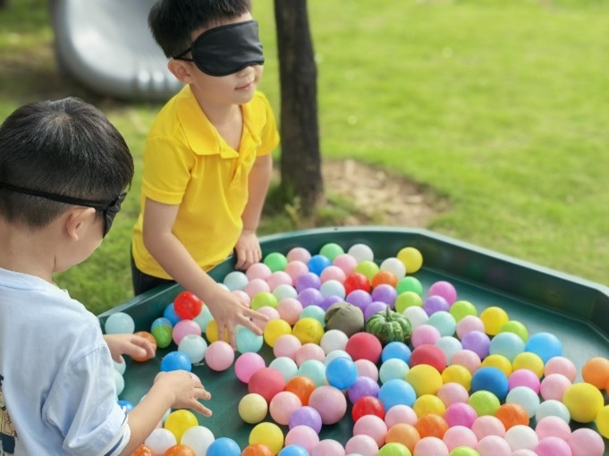 EY1的小探索家们还在户外畅玩一系列充满趣味的感官游戏。