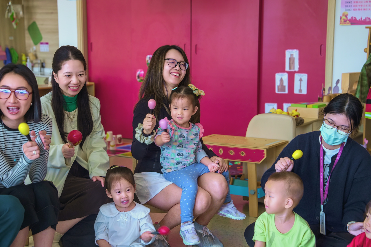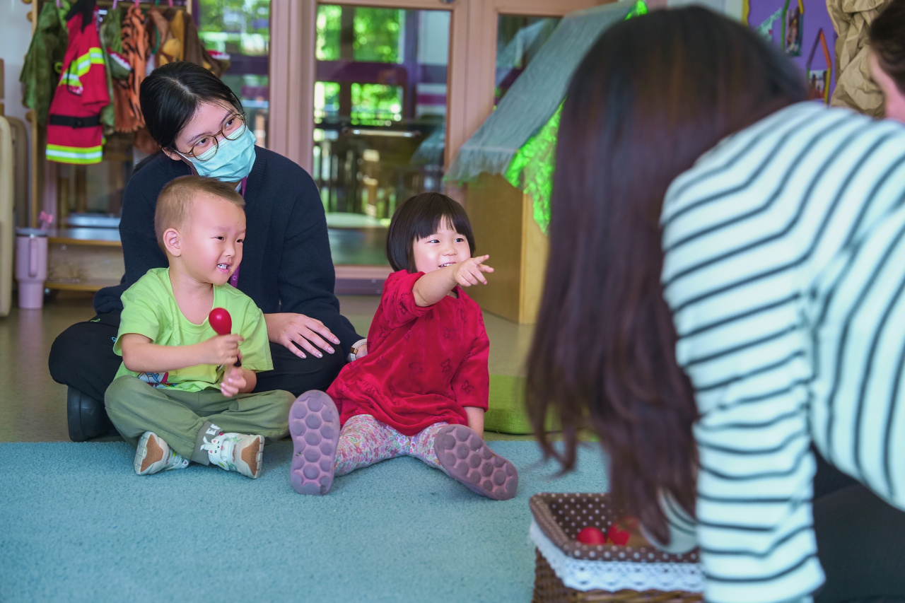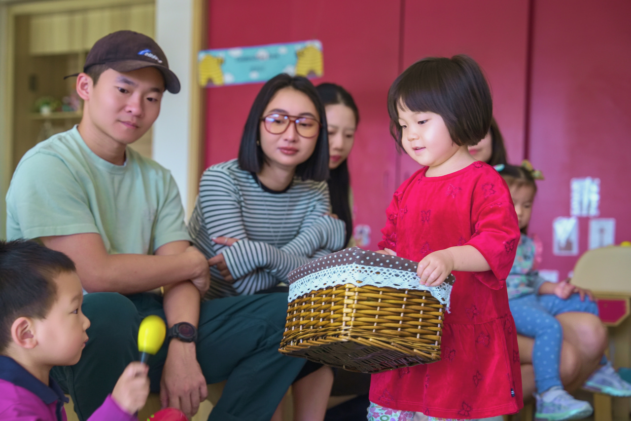 学习之旅惊喜不断,萌娃们大声喊出英文词汇,奶声奶气的甜蜜发音萌化全场;更有活力满满的游戏互动—“小蜜蜂”们灵敏地跳到家长手中颜色对应区域,再大声喊出颜色名称,在欢快跳跃中萌态十足。