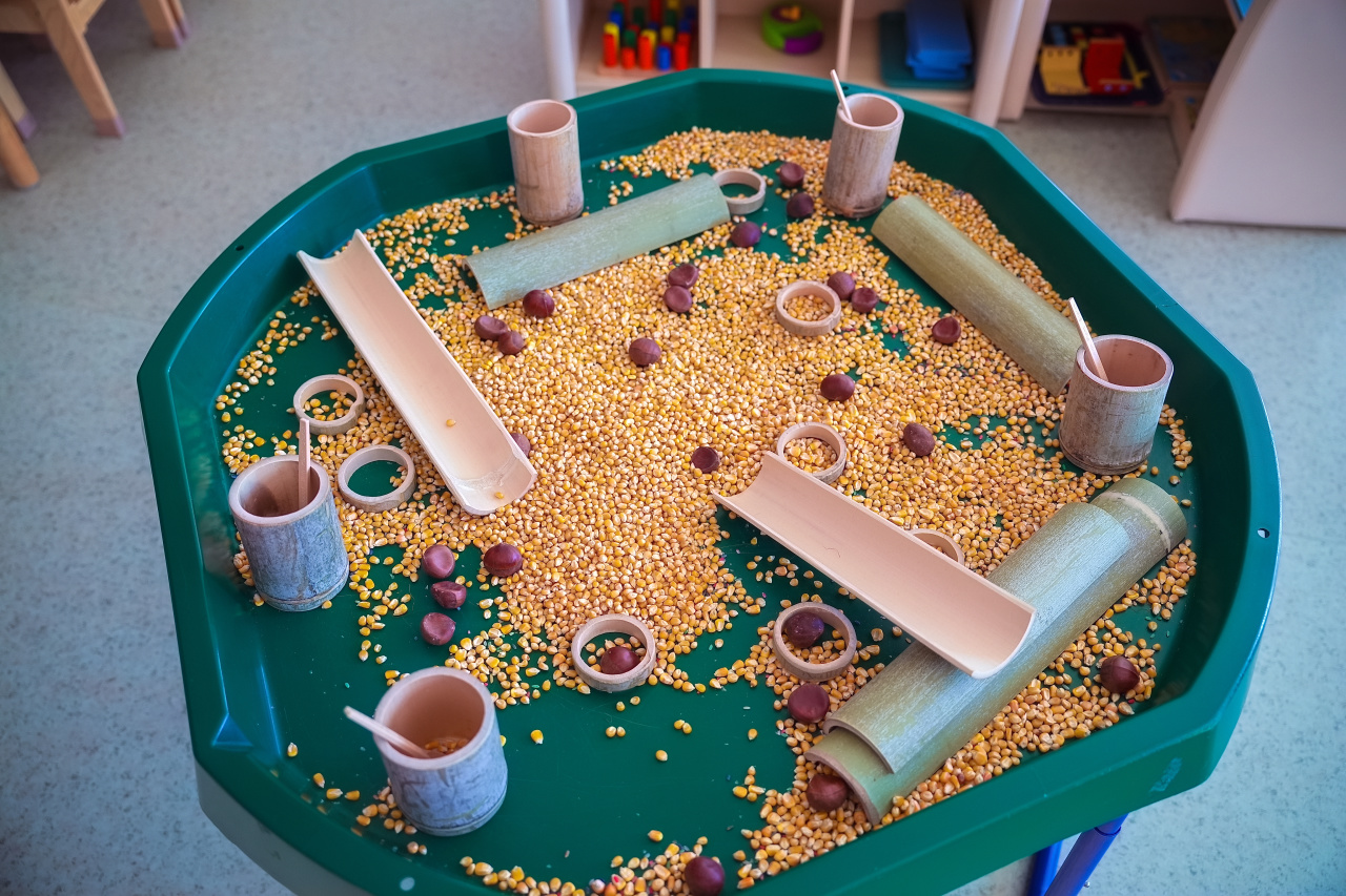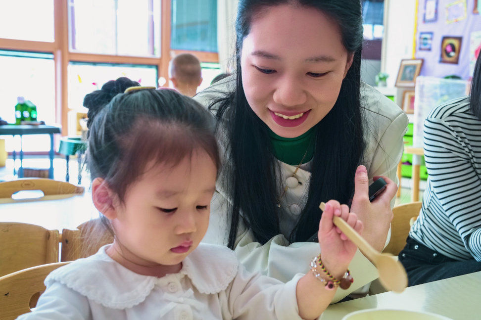 美工区里,“小蜜蜂”们用粘土捏出可爱饼干、纸杯“蛋糕”;感官区的趣味材料,让每个角落都成为探索知识的乐园。