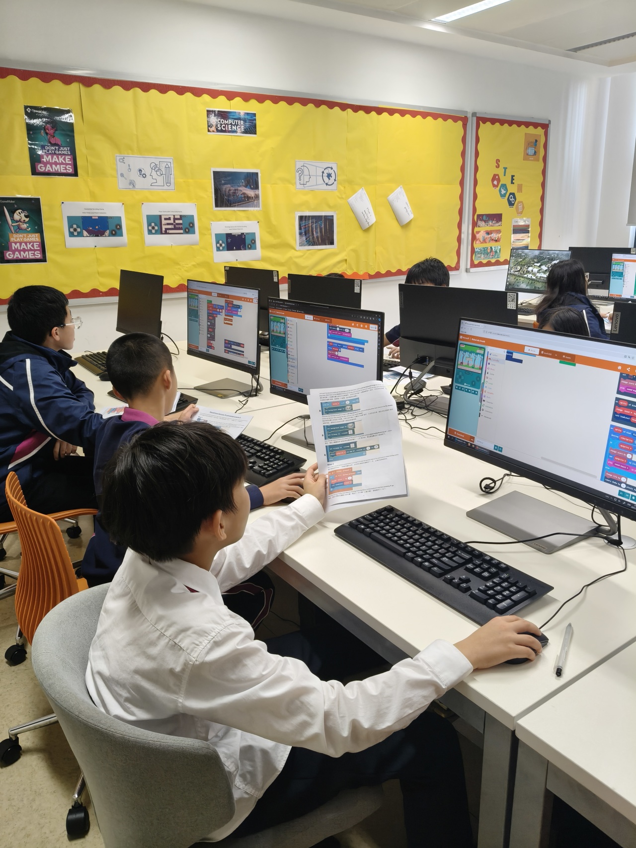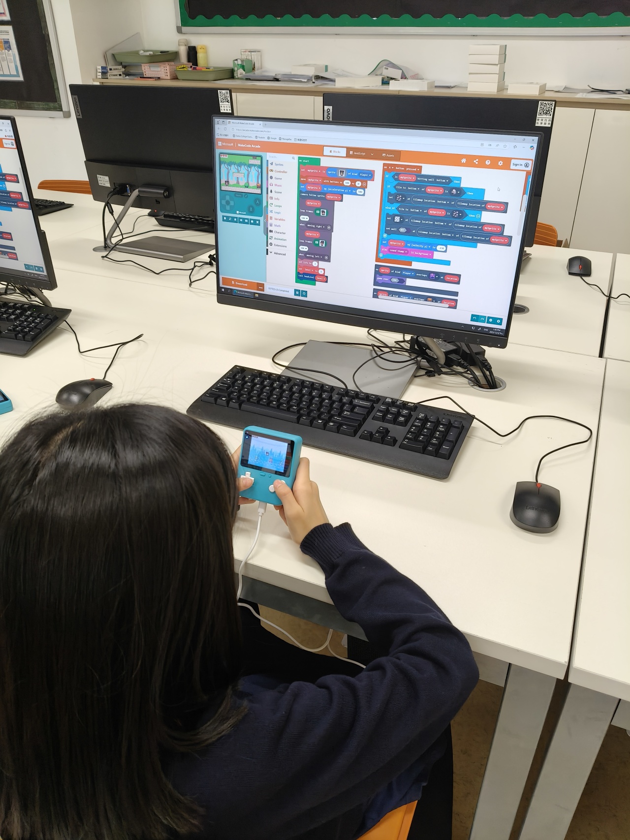 我们的六、七年级学生正在深入探索游戏开发的激动人心的世界,使用 Microsoft MakeCode Arcade,从玩家转变为创作者!学生们探索了基本的游戏开发概念,包括子画面、碰撞、投射物、平台和事件处理。